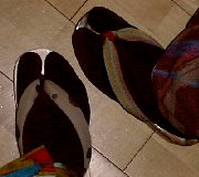 この下駄は色落ちする。白足袋を何度汚したことか…。裏が濃い色の足袋でないと履けない。別珍足袋は暖かいは、汚れはみえないはサイコー!