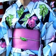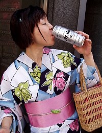 缶ビール500mlをグィ〜と飲み干し、(帯留めは 枝豆@G工房)