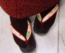 歩き易い形の下駄で、足も疲れしらず。