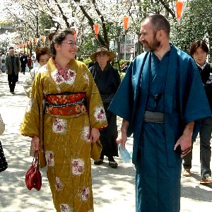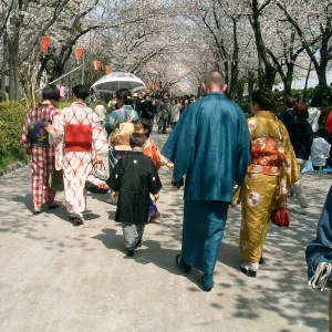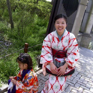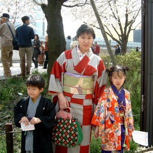 毎年開催されている「隅田川きもの園遊会」。 着物姿であれば誰でも参加できるスタンプラリーがあり賞品も沢山当たります。隅田川沿いの公園で満開の桜を愛でながら楽しい1日を過ごしました。 この日の私達はグローバル&ファミリーちっくな団体さん。ちょうどお加代さん宅にフランスからの友人が滞在されておりまして、フランス人のロジェさん・フローランスちゃんも着物姿でお花見に参加です。お2人ともとても日本びいき。ロジェさんはなんと!フランスで忍術を習っているそうです。(習っていることより、そういうものがある自体に驚くよね) もちろんお加代さんちの双子ちゃんも堂々の着物姿です。 最高の晴天に恵まれました。首の後ろがヒリヒリするほどの陽気。桜並木を歩きながらスタンプラリーに参加して、フローランスちゃんとお恵美ちゃんの2人が見事4等当選!豪華なバッグと草履のセットが当たりました。フローランスちゃんにはいいお土産になってよかった、よかった。 では当日の様子をご覧くださ〜い。 小さいサムネイル画像をクリックすると、すぐ下に大きく表示されます。