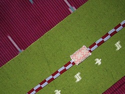 ショールピンにして布柄がいい感じに収まったので 帯留めも作ってみました。 濃い目の帯が多いので白っぽい帯留めは重宝しそう。 さらに、お気に入りのハギレでもう1セット作成。 青×茶のほうは柄のどの部分をもってくるかで迷いましたが、悩んだわりには最後は適当(笑)