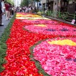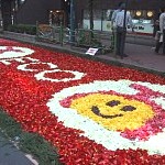 毎年4月29日のみどりの日に行われる「銀座みゆき通り・フラワーカーペット」というイベントへ行ってきました。 当日早朝に富山県から運ばれて来るチューリップの花びらで路上に絵が描かれます。 球根を育てる(根を太らせる)ために満開を待たずに摘み取られたチューリップを利用しているそうです。 約300メートルの通りがチューリップの花びらで埋まった様は綺麗でした。 図案の上に花びらを置いているだけだというので風の強い日だったら飛ばされてしまう。 穏やかな日でよかったです。 花の色が鮮やかなので、どの絵もメリハリのある色使い。