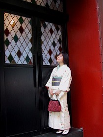 途中通ったキハチのビル。写真だけ撮らせていただきました。 美しいコントラスト。 奥からの灯かりを映すモダンなステンドグラス。 ★本日のこしらえ★