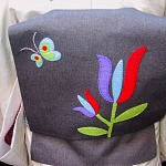 生成り色に花模様の紬と、昨年作ったチューリップ帯→今日はやっぱりコレでしょう。お花づくしでございます。 帯留めはまた小鳥さんで皆様飽きてらっしゃるとは思いますが、チューリップに似合うものが他になかった。 後ろもご存知チューリップ。