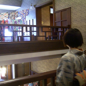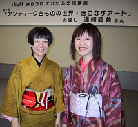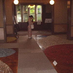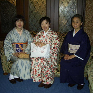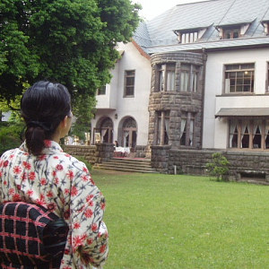 ご存知ない方のために、ツウザキさんというのはアンティーク着物コレクター、またマリンバ奏者でもある通崎睦美さんのこと。何年も前にツーショットでお写真撮っていただきましたの。←左が通崎さん。 私、顔デカいよ。いや顔だけじゃなくて幅もあるぜよ。 斜め向きに撮っているのにこの差にガクゼン(笑) 本日のメンバーはお恵美ちゃん・カルメンさん・K♪さん。会場の和敬塾本館は昭和初期の西洋館(旧細川侯爵邸)で普段公開はされていないそうです。ちなみに和敬塾は男子寮でした。敷地に入ると若い男子がいっぱい。すれ違うたびに私達に「こんにちは〜」と挨拶してくれるという躾の良さ。息子がいたら絶対ココに入れるわ!と、お恵美ちゃんが感動していました。 話戻して… 目白の洋館にまさに「通崎好み」の空間。コレクションや通崎さんプロデュースの新作着物、また芸術家さんの現代アートありで、たっぷり楽しんできました。 では洋館と展示品(撮影OKだった)、私達の様子をご覧くださいね。小さい画像をクリックすると、すぐ下に大きく表示されます。
