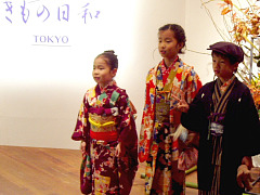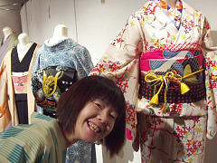 田中翼さんのきものコーディネート展示。中でもお気に入りのトルソー前で、ニッ♪