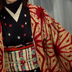 あけまして おめでとう ございます。 ぬくぬくと実家でお正月を過ごしてまいりました。 帰省のバッグには着物一式がどうやっても入らず、出発直前にバタバタと運送便で送りました。 軽め薄めの着物や帯にしたけれど、こまごまとした着付け用品に小物、下駄、バッグと結構かさばります! 今年は元旦に弟夫婦が来たくらいで他に来客もなく、ゆったりと充実したお正月でした。 親から「またかい?」と呆れられてきた帯作りを2日に、3日は近くの臨海水族園で半日楽しんできました。綺麗な熱帯魚を見ては石垣島を思い出し、寒空の下、ペンギンの餌やりを嬉々として見ておりました。帰りには水平線に沈む夕陽と富士山がクッキリ。新春にそんな風景が見れて幸先よい予感。 ただ、期待した「おまけ」、水族園までの往復40〜50分の散歩で蓄えすぎたカロリーを消費できると思ったがそれは甘かった。 今年もどうぞ宜しくお願い致しま〜す。 ![]() 作った帯は後日アップいたします。 但し今回は自分用ではないのです。着用のお姿は別なところで見られるかと。 fufufuのfu♪ ★元旦のこしらえ