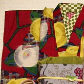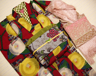 ★こしらえ★着物は銘仙。ヤフオクで買った初めてのアンティークでした。 何度もHPには登場しています。 羽織は考える時間なくてショールひっかけていきました。 母が使っていた年季もんのショール。 帯まわりは前回と一緒。ゆっくり悩んでいる時間がなかったの〜。 |