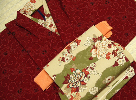 + 手作り + obi 雲取り牡丹ちゃん |