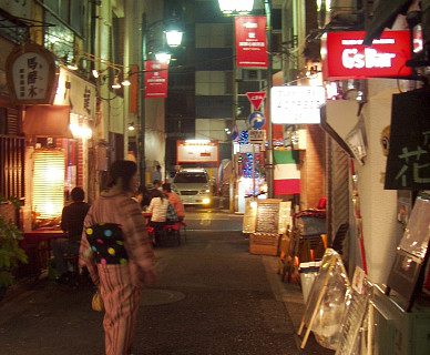 さてさて、新宿にきたら、夜に落ち着く処は決まっております。 庄助。わかる人には、わかるでしょう。 今やお洒落な「ダイニングバー しょう助」とかもありますけど、 ツウはやっぱり昔からある庄助さ。 そして、久しぶりに、懐かしの路地を通る。 元MSの皆様ならよくご存知の、 左側が「欅(ケヤキ)」「九龍(クーロン)」、右側が「どん底」、の道ですわよ〜。 ![]() ★ 本日のこしらえ ★