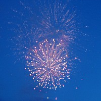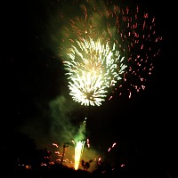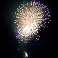 6時15分から「開催合図」の花火が数回あがり、7時からド・ド・ドドドーン♪始まり〜♪ さて、今回、初めての体験をしました。 打ち上げ場所に近いという事と、風下だったため、花火の残骸が降ってくるんです〜。 それも1つや2つじゃありません。 大きな残骸もあれば、ススやカスみたいな小さいものまで相当数が降ってきました(笑) 事前にちゃんと注意アナウンスはあったのですが、 降ってきて初めて「これの事だったのか〜」と実感した次第。 これはこれで楽しめました。 残骸1つめが近くに落ちてきた時は記念に持って帰ろうかな〜なんて思ったけど あまりの多さに、だんだん ただのゴミ に見えてきて(←当然!)やめました。