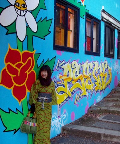 夜は飲み会が控えていたので、扱いラクで暖かいウールです。 帯は半巾の(見えないけど柄は)水玉に蝶。 前日までキモノは予定してなかったのだけど、 起きたらキモノ日和の暖かな日で、 急にキモノが着たくなった。 アートな雰囲気かもしてそうな柄のウールを選んだつもりなんですが、 (たんに、花柄とかじゃなくて幾何学模様みたいのがいいなと思っただけ) これがどうも外国人ウケ良かったみたいです。 館内で日本男性&外国女性というカップルさんからお褒めの言葉をいただいちゃって 逆にすみません、って感じです。 いや、あの、これ、ただのウールで・・・ 汗; 汗;